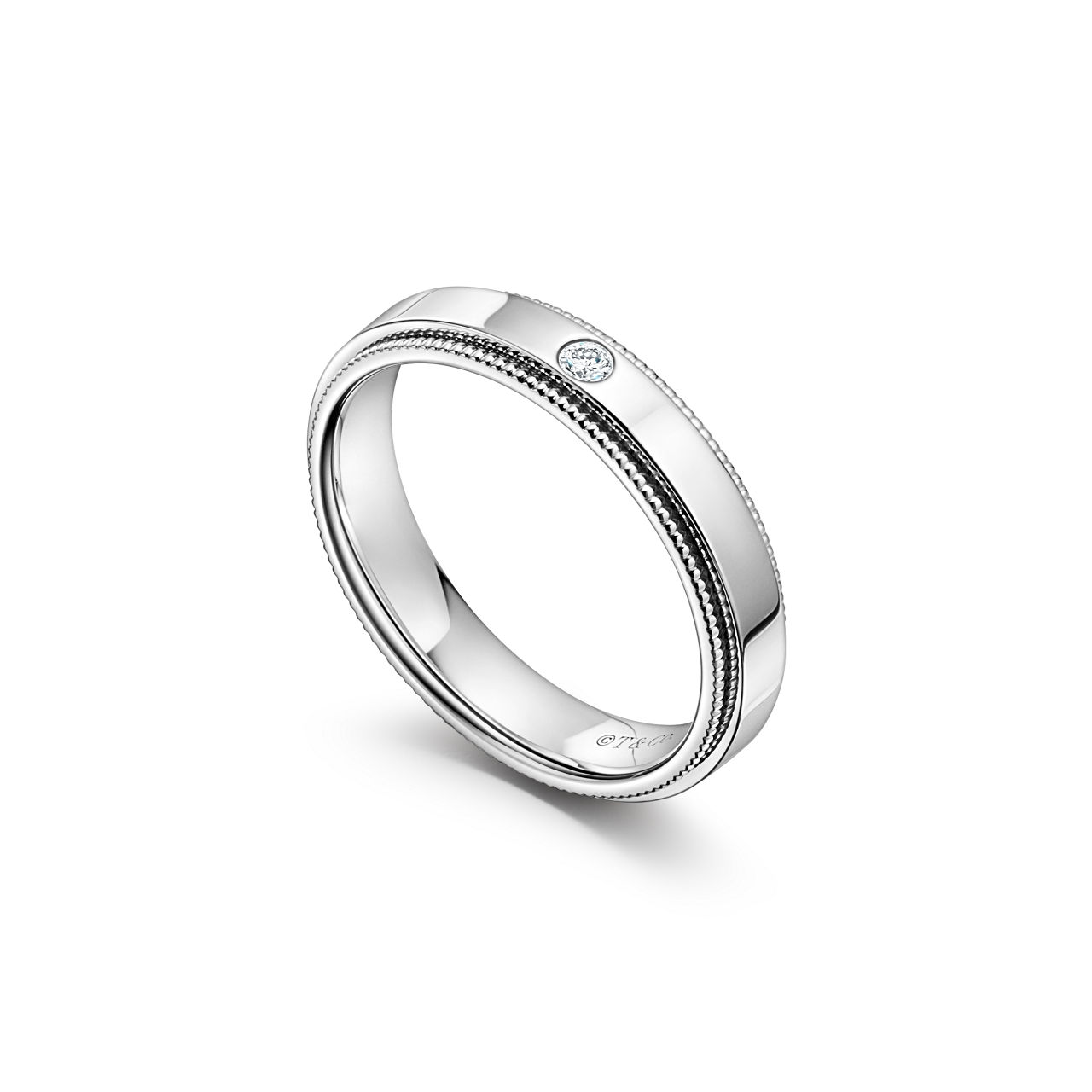 Milgrain Band Ring in Platinum with a Diamond, 4 mm Wide
