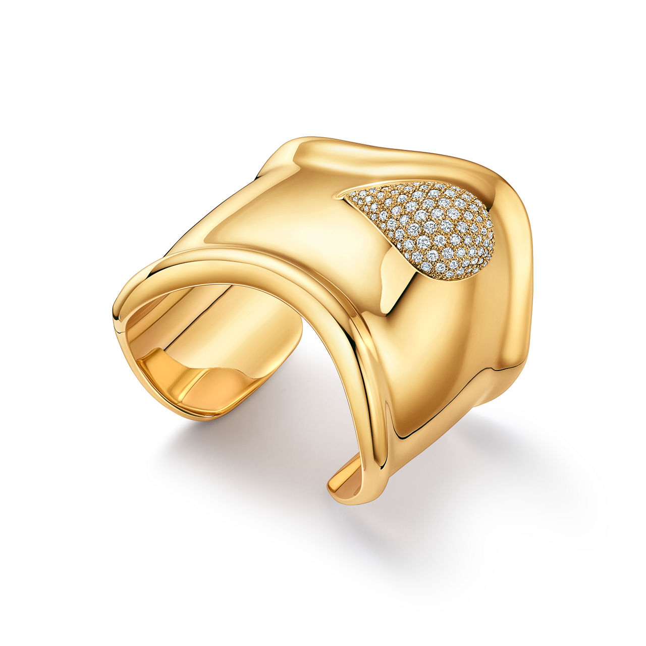 Bone Cuff in Yellow Gold with Pavé Diamonds, 61 mm Wide